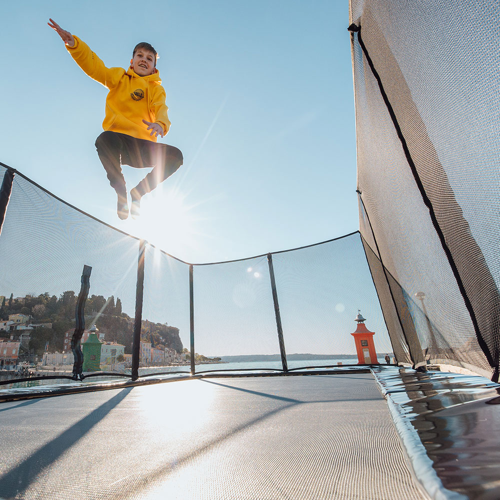 You will love jumping on the biggest above ground trampoline in our product range. Its extra large size and specially designed AkroVentSport jumping mat creates the ultimate experience for high energy jumpers looking for optimal performance.
